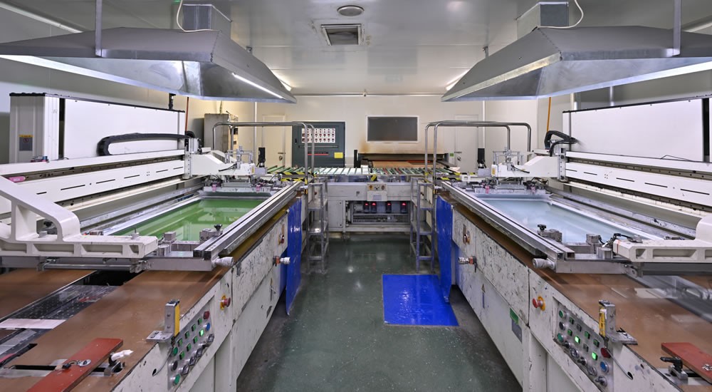 目前擁有國(guó)際領(lǐng)先的,超2萬(wàn)平方米的玻璃深加工和自動(dòng)化印刷無(wú)塵車(chē)間,依托先進(jìn)的絲網(wǎng)印刷技術(shù),可年產(chǎn)220萬(wàn)平方米彩晶玻璃,給即需即供的營(yíng)銷(xiāo)戰(zhàn)略提供了強(qiáng)有力地保障 。