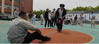 第二項(xiàng)進(jìn)行的是“合力吹氣球”,共有六組參加,每組4人,每個(gè)人分工不同,吹、扎、運(yùn)、破,完整的運(yùn)送5個(gè)氣球并用屁股坐破所用的時(shí)間最短為獲勝。這個(gè)項(xiàng)目不僅考驗(yàn)體力活、手工活,還考驗(yàn)足夠強(qiáng)大的肺活量。